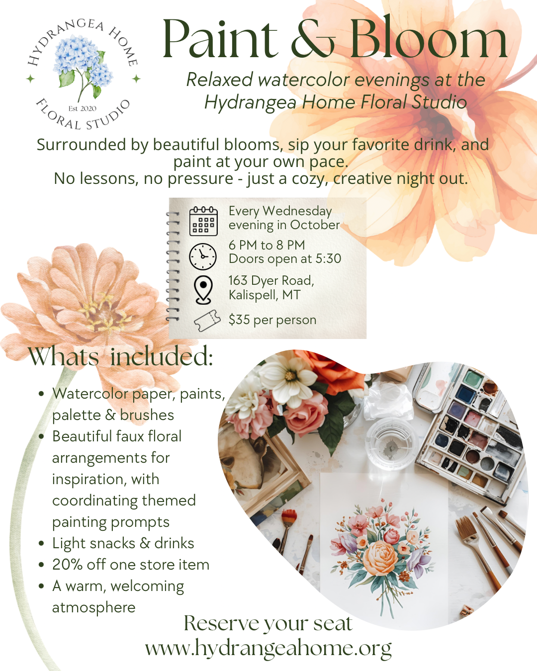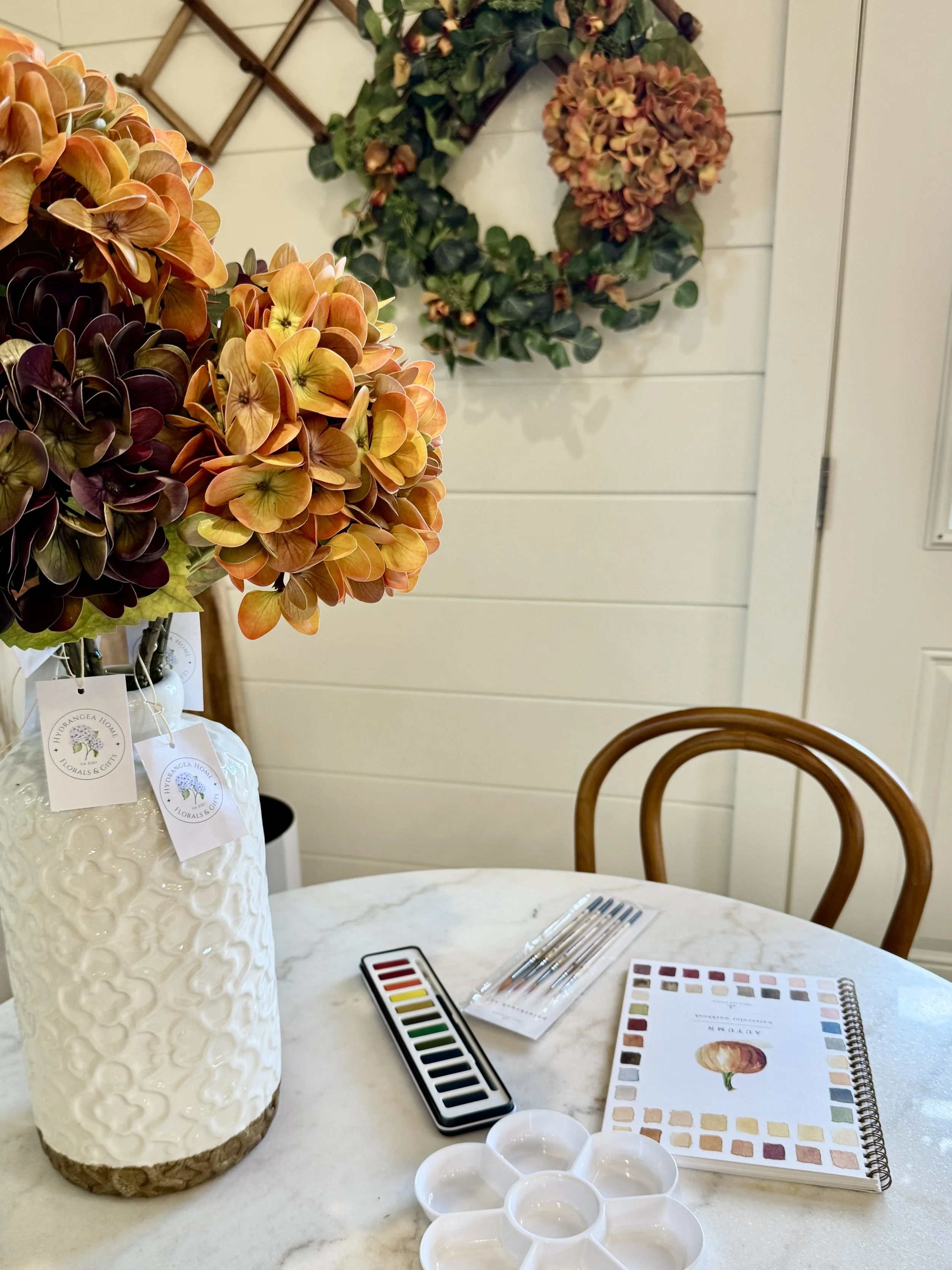 Let’s get together at the Floral Studio! Come and relax and enjoy some good ole’ girl time. Surrounded by beautiful blooms, sip your favorite drink and paint with watercolors at your own pace. With weekly themed painting prompts, but no lessons, there’s no pressure - just you enjoying a cozy & creative night out.